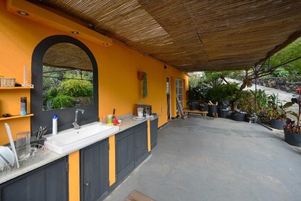 Vandaag, zaterdagochtend, is dit ons uitzicht. Regen, urenlang en hard ook. De wandelplannen die we voor vandaag hadden, zijn uitgesteld. Binnen blijven en hopen dat er nergens iets gaat lekken, wat in Canarische huizen regelmatig het geval is. Voordeel is, dat ik nu weer eens tijd heb om een bericht te maken. Een’ voor & na’ serie leek ons wel wat. Om een goed beeld te krijgen van de hoeveelheid werk die er verzet is en de veranderingen die dat heeft opgeleverd. Voor zover dat nog niet duidelijk was 😊 . Een gedeelte van de oude foto’s is van de makelaar, met een groothoeklens gemaakt en dus een beetje uit verband getrokken.